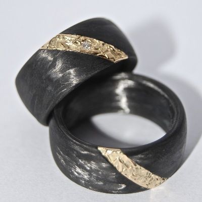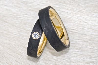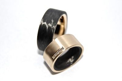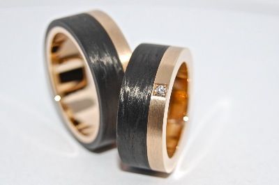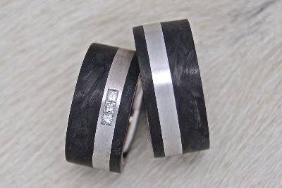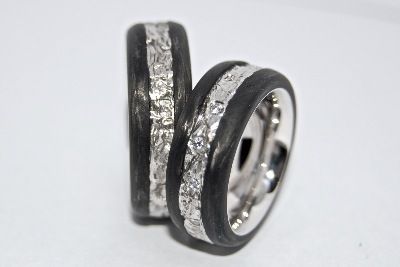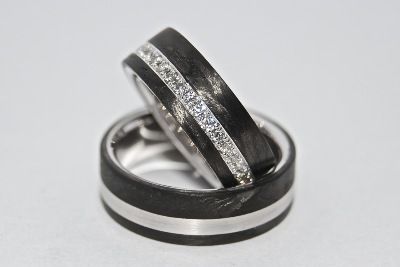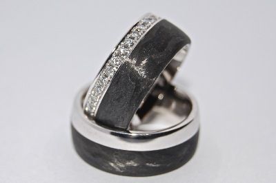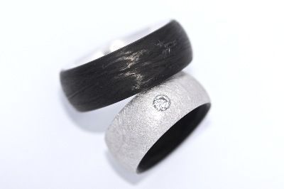 Palladium white gold 750 ladies ring with white diamonds men's ring with black diamonds